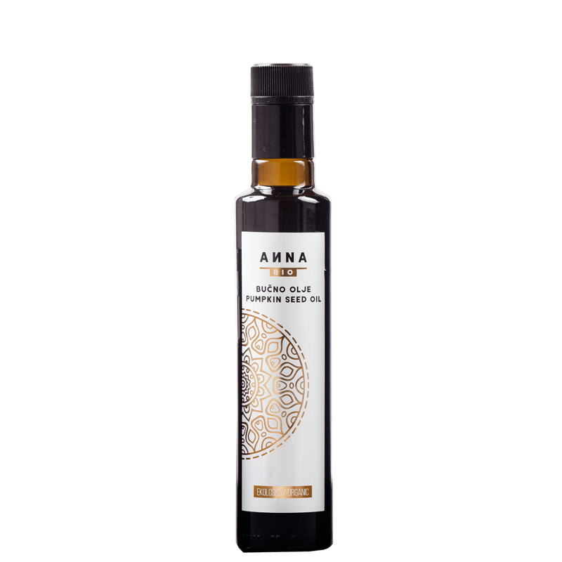 Jedilno nerafinirano bučno olje pridobljeno iz ekološko pridelanih bučnih semen in stisnjeno po tradicionalnem postopku
