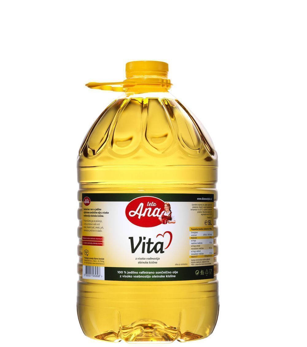 - Sestavine: 100 % jedilno rafinirano sončnično olje z visoko vsebnostjo oleinske kisline.